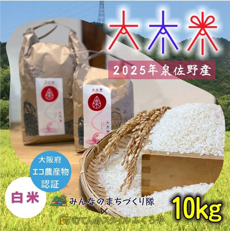 泉佐野市・大木地区の農家さんが、農薬の使用をできるだけ減らして丁寧に育てた、減農薬のお米「にこまる」は、大阪府エコ農産物認証済みの安心米です。